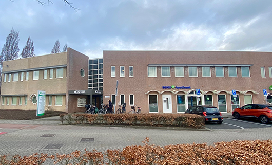 Ingang achterzijde: als u via de ingang aan de achterzijde van het gebouw binnenkomt, dan bevindt de wachtkamer zich aan de linkerkant. Dit wordt aangegeven met bewegwijzering.